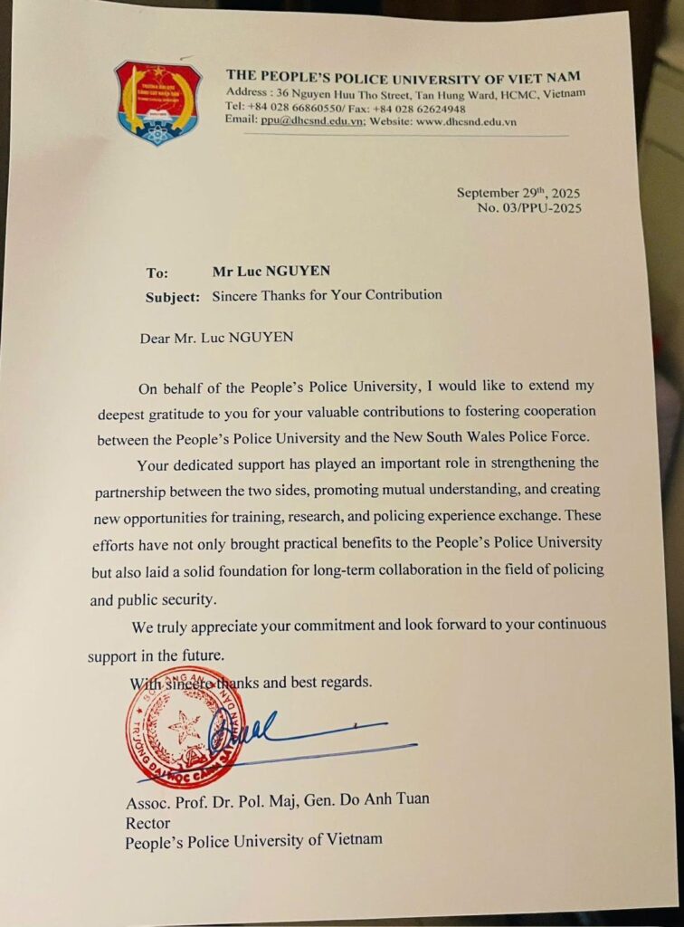Also, there was an Official Working Visit by Police Major General Tuần and his delegates from People’s Security University to NSWPF, AFP, AIPM and NSW Police Academy.