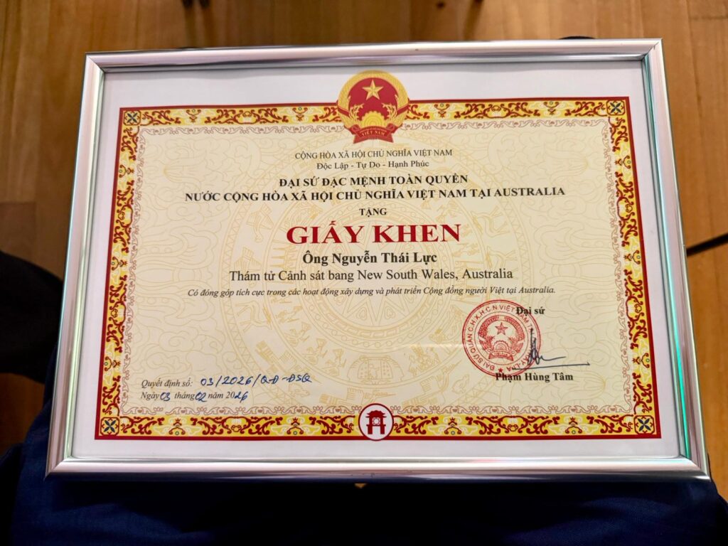 Luc Nguyen was recognised for his “significant contributions to the establishment and development of the Vietnamese community in Australia,” at the Vietnamese New Year Celebration and Awards Presentation. The award was presented by the Vietnamese Ambassador in Canberra.